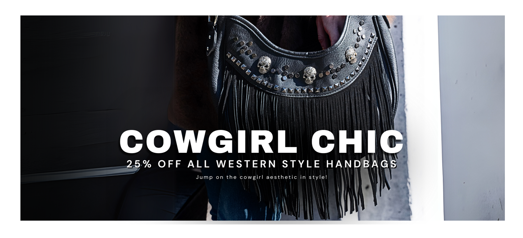 Our concealment handbags are a bold blend of style and functionality, offering discreet storage with a statement-making design. Our Concealed Fringe Bags feature rich supple leather, intricate tooling, and studded accents, evoking a rustic but edgy charm. Skull-themed designs cater to edgier tastes, incorporating gothic-inspired details like metallic hardware and dark tones. Perfect for blending security with on-trend aesthetics, these versatile bags resonate with those who appreciate individuality and practicality in their accessories.